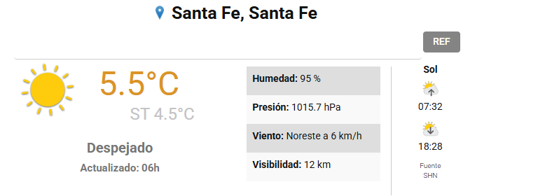 El SMN pronostica para hoy martes 28 de abril 2026 en la ciudad de Santa Fe de la Vera Cruz capital de la provincia de Santa Fe República Argentina.