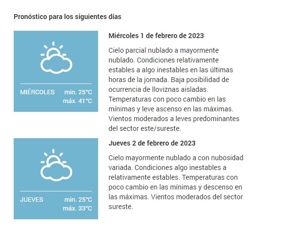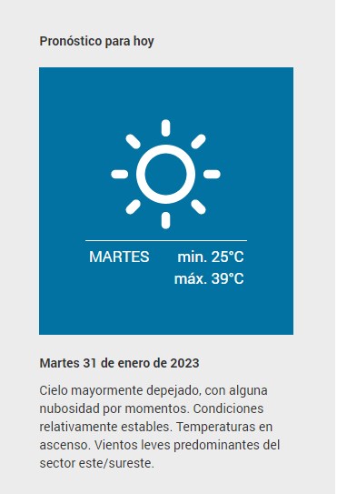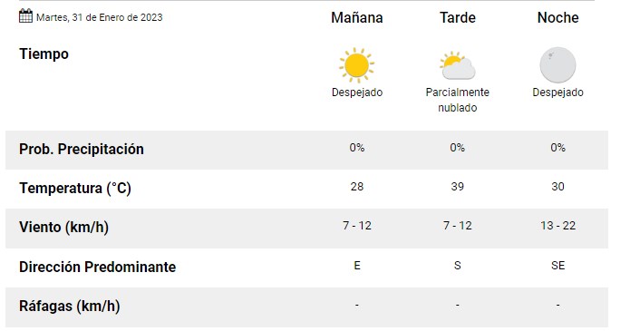 domingo 5 de enero El SMN pronostica para hoy martes 31 de enero 2023 para la ciudad de Santa Fe