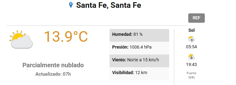 En tanto que el Centro de Informaciones Meteorológicas de la FICH pronostica para hoy martes 18 de noviembre 2025 en la ciudad de Santa Fe de la Vera Cruz capital de la provincia de Santa Fe República Argentina.