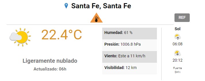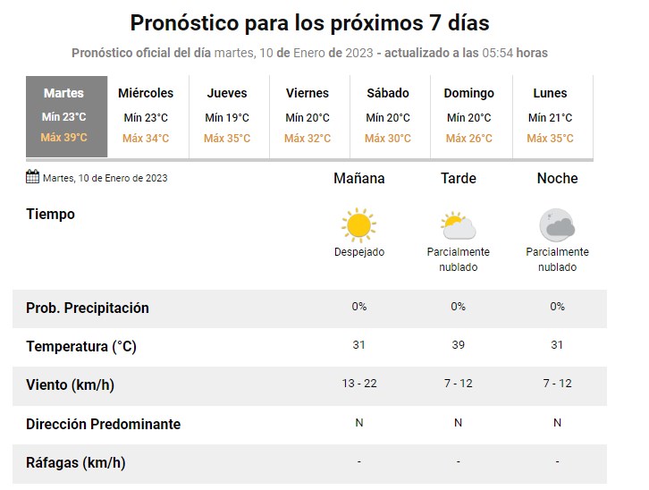 El SMN pronostica para hoy martes 10 de enero 2023 para la ciudad de Santa Fe