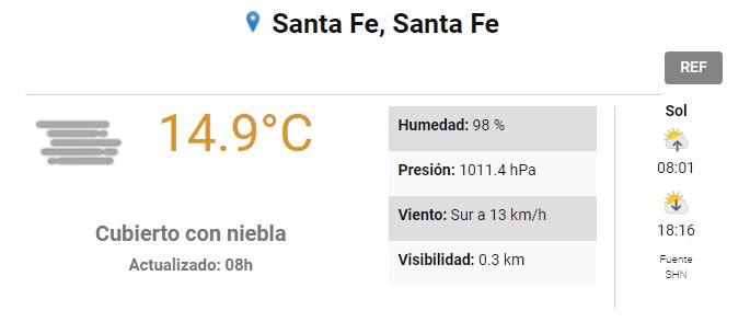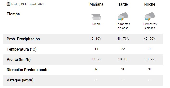El SMN pronostica para hoy martes 13 de julio para la ciudad de Santa Fe