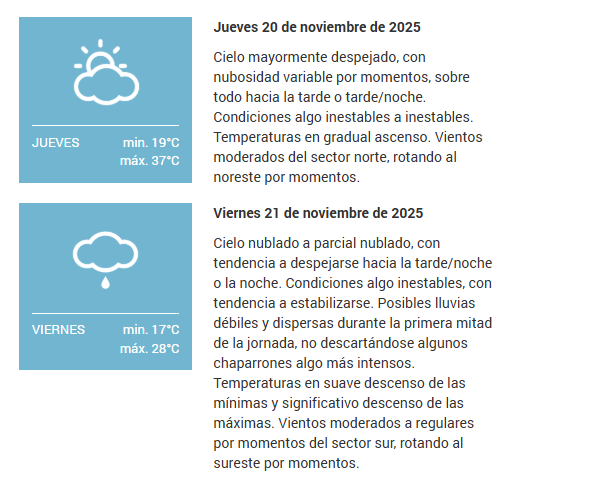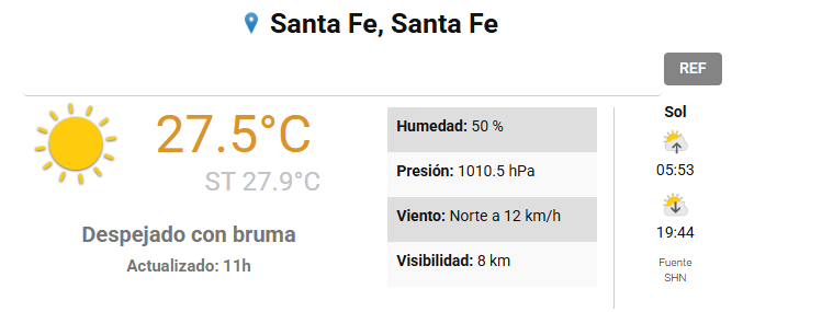 En tanto que el Centro de Informaciones Meteorológicas de la FICH pronostica para hoy miércoles 19 de noviembre 2025 en la ciudad de Santa Fe de la Vera Cruz capital de la provincia de Santa Fe República Argentina.