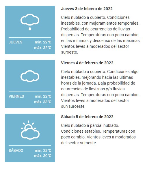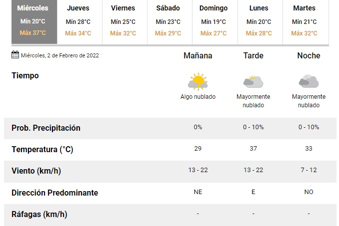 El SMN pronostica para hoy miércoles 2 de febrero 2022 para la ciudad de Santa Fe