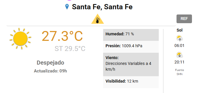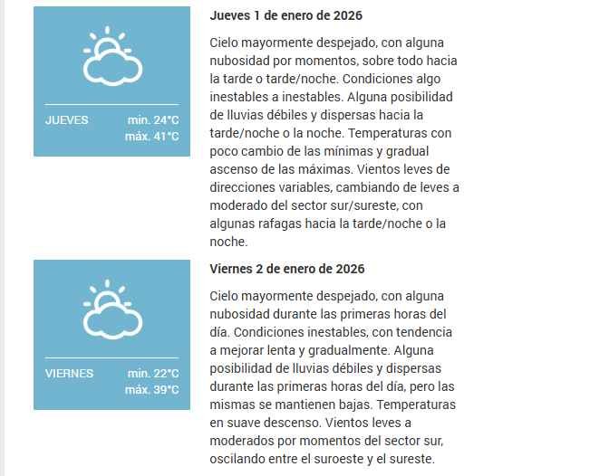El SMN pronostica para hoy miércoles 31 de diciembre 2025 en la ciudad de Santa Fe de la Vera Cruz capital de la provincia de Santa Fe República Argentina.