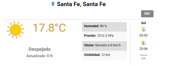 En tanto que el Centro de Informaciones Meteorológicas de la FICH-UNL pronostica para hoy miércoles 17 de diciembre 2025 en la ciudad de Santa Fe de la Vera Cruz capital de la provincia de Santa Fe República Argentina.