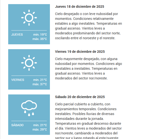 El SMN pronostica para hoy miércoles 17 de diciembre 2025 en la ciudad de Santa Fe de la Vera Cruz capital de la provincia de Santa Fe República Argentina.