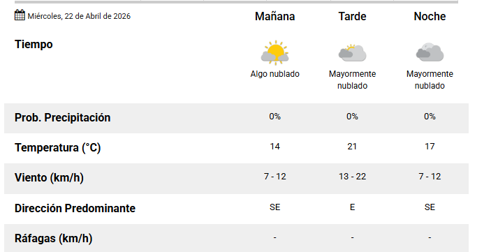 El SMN pronostica para hoy miércoles 22 de abril 2026 en la ciudad de Santa Fe de la Vera Cruz capital de la provincia de Santa Fe República Argentina.