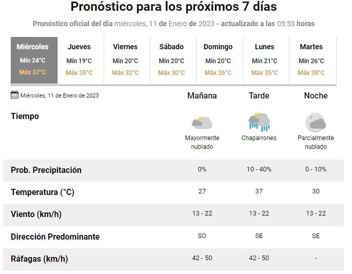 El SMN pronostica para hoy miércoles 11 de diciembre 2023 para la ciudad de Santa Fe
