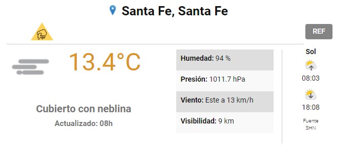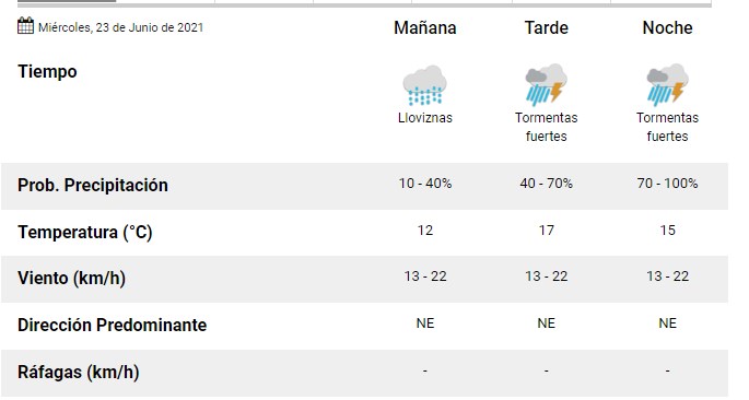 El SMN pronostica para hoy miércoles 23 de junio 2021 para la ciudad de Santa Fe