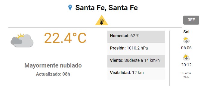 El SMN pronostica para hoy martes 7 de enero 2025 para la ciudad de Santa Fe de la Vera Cruz capital de la provincia de Santa Fe República Argentina