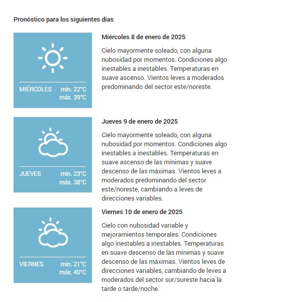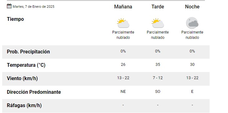 En tanto que el Centro de Informaciones Meteorológicas de la FICH pronostica para hoy martes 7 de enero 2025 para la ciudad de Santa Fe de la Vera Cruz