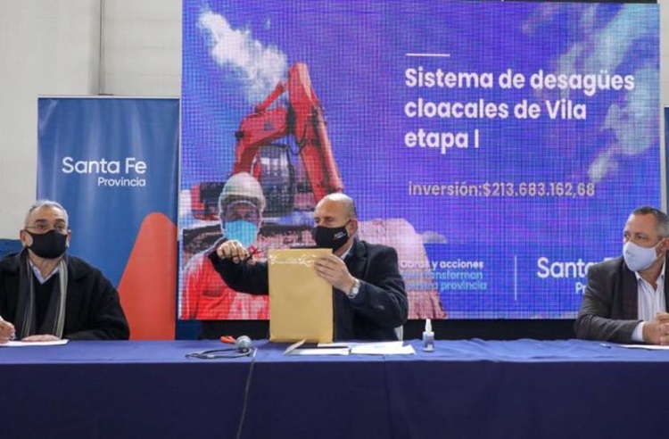 El gobernador Omar Perotti encabezó un acto en el mediodía de este lunes, en la localidad de Vila, en donde se licitó la obra de cloacas para este pueblo del departamento Castellanos. Con un presupuesto superior a los $200 millones, beneficiará a 1.500 habitantes.
