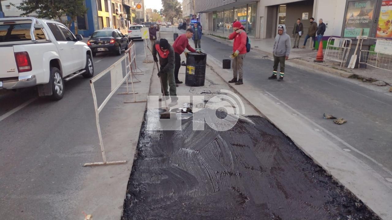 Este martes por la mañana, por trabajos de bacheo, se encuentra interrumpido el tránsito en la intersección de Rivadavia y Obispo Gelabert.
