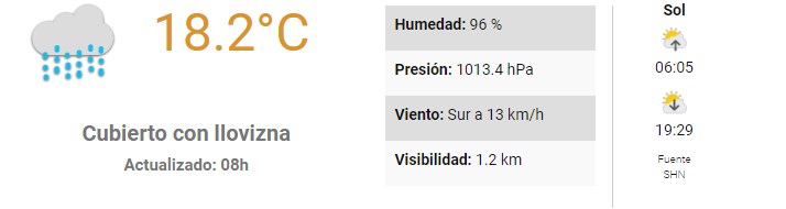 En tanto que el Centro de Informaciones Meteorológicas de la FICH pronostica