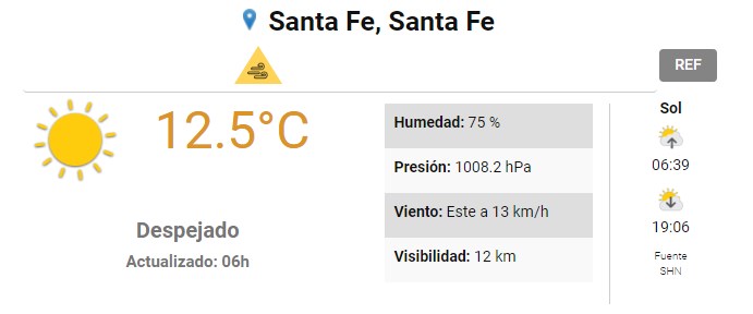 El SMN pronostica para hoy sábado 2 de octubre 2021 para la ciudad de Santa Fe y zona de influencia: