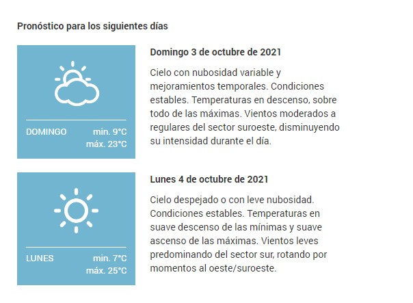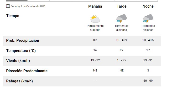 En tanto que el Centro de Informaciones Meteorológicas de la FICH pronostica para hoy sábado 2 de octubre 2021: