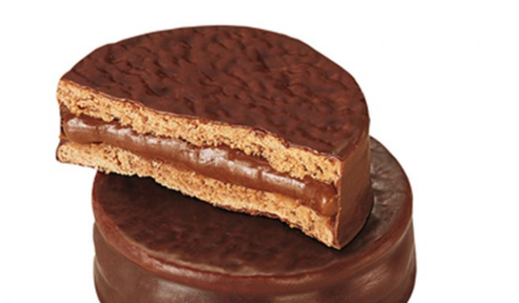 Mini torta sabor chocolate rellena con dulce de leche y mousse sabor a vainilla cubierta con baño de repostería, marca: Nevares, nombre de fantasía: Chocoblok, RNE: 02-031531, RNPA: 02-520154, fecha de vencimiento: 28/08/2019, lote: L05 31.