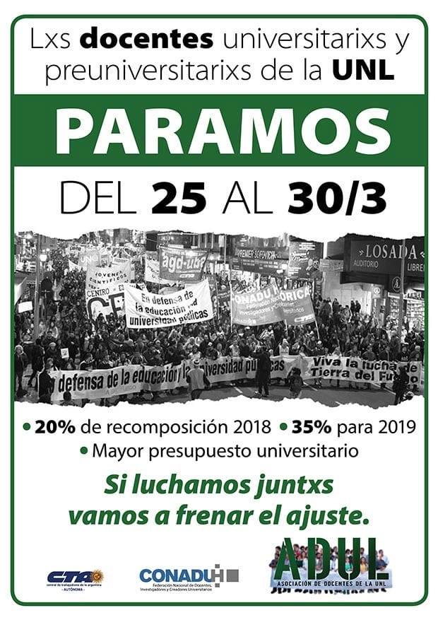 (ADUL profesores santafesnos) – Lunes 25 y hasta el 30 de marzo