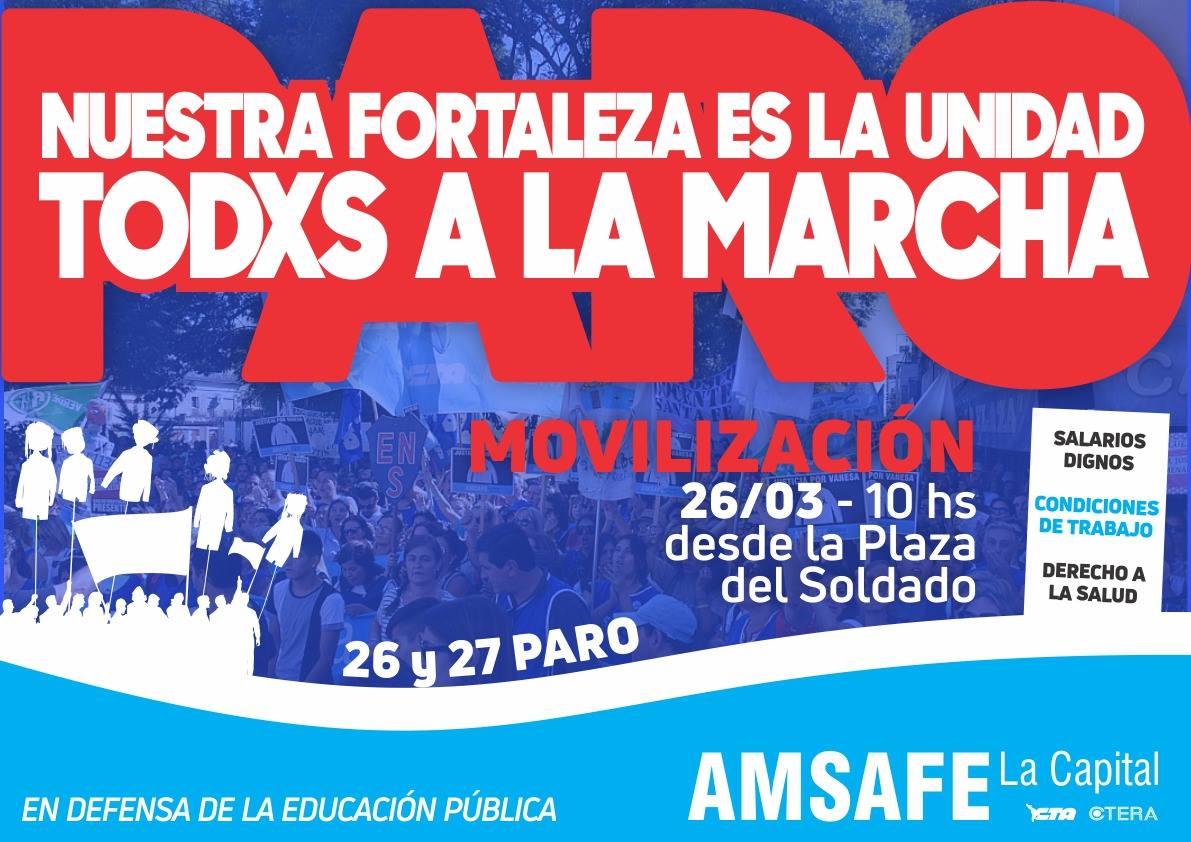 (Docentes- Amsafé, Sadop, UDA y Amet) Martes 26 y miércoles 27 del corriente mes.