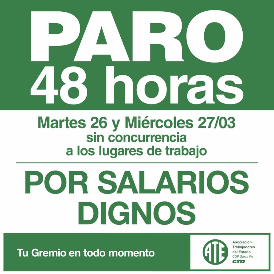 Finaliza Marzo en Santa fe, con un marco importante de paros y movilizaciones por parte trabajadores, la lucha que se viene dando por paritarias entre el gobierno y los diferentes gremios, tiene con fin iniciar una semana colmada de manifestaciones. A pesar de lo mencionado por el Ministro Pablo Farías, quien destacó que no se descarta descontar los días no trabajados.