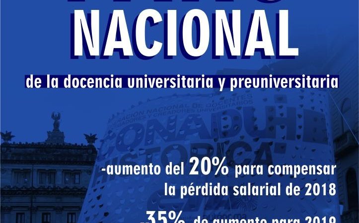 Los docentes universitarios van al paro por una semana, La medida de fuerza fue resuelta ante el grave atraso salarial que supera el 17 %, la falta de respuestas del gobierno al reclamo de recomposición y la imposición de sumas en negro que desfinancian las obras sociales, el sistema jubilatorio.
