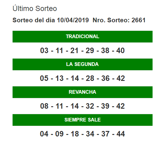 Quini 6 los números del sorteo nº 2661 miércoles 10 de abril Comenta sobre esta publicación Navegación de entradas SMN: jueves nublado con alguna llovizna Todas las quinielas del miércoles 10 de abril