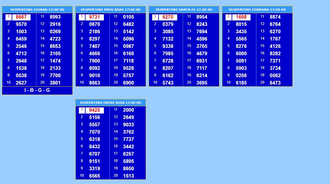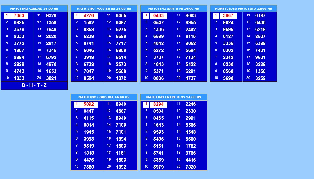 Quinielas todos los números: lunes 16 de diciembre Comenta sobre esta publicación Navegación de entradas Quini 6 : sorteo N° 2733 miércoles 18 de diciembre con un ganador de la segunda La tarjeta alimentaria llegaría en enero a Santa Fe