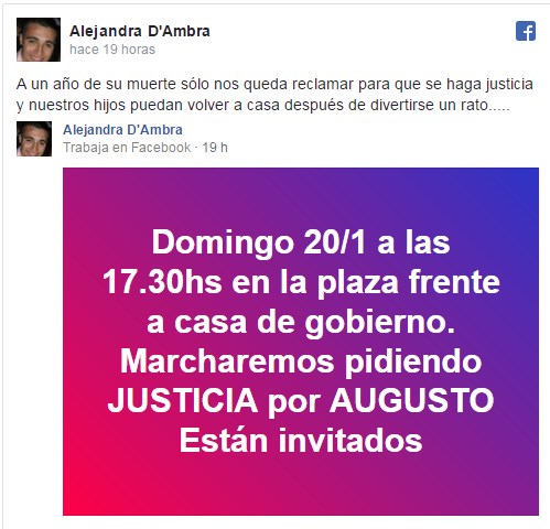 “Va a consistir en pedir justicia para que esto no vuelva a pasar más y para que la familia podamos hacer nuestro duelo como corresponde”, explicó a El Litoral Alejandra D’Ambra, madre de Augusto.