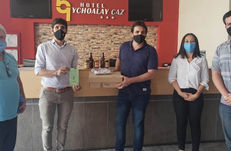 Funcionarios del Ministerio de Producción, Ciencia y Tecnología visitaron la ciudad, recorrieron firmas locales y entregaron cajas con productos en hoteles de la región.