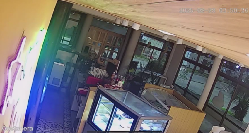 Las cámaras de seguridad registraron el momento en que uno de los ladrones intentó abrir una ventana y al no lograrlo, pateó con fuerza la puerta principal hasta conseguir entrar. Una vez adentro, se sumaron sus dos cómplices y comenzaron a revisar el lugar en busca de dinero.