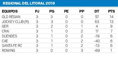Finalmente, en Grantfield, Old Resian ratificó su espléndido presente, superando a Gimnasia y Esgrima de Rosario por 34 a 25, con el arbitraje de Juan Pablo Spirandelli (de la URR).