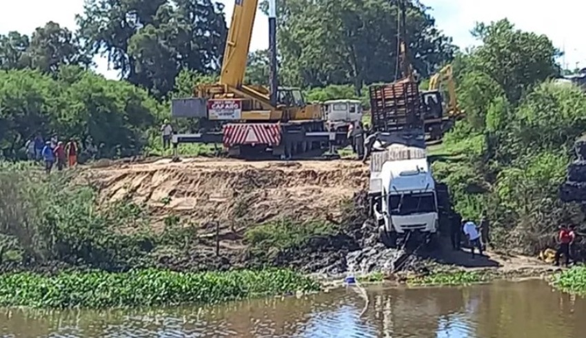 Pasadas las 16, y con la colaboración de una grúa de mayor porte que arribó esta jornada, lograron retirar el camión de las profundidades en donde se encontraba, aproximadamente a unos cinco metros.