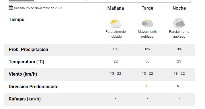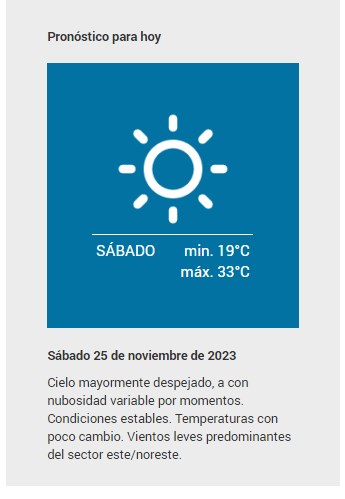 El SMN pronostica para hoy sábado 25 de noviembre 2023 para la ciudad de Santa Fe