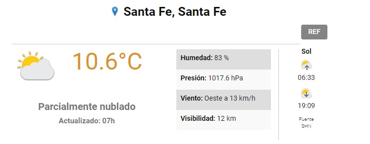El SMN pronostica para hoy sábado 7 de octubre 2023 para la ciudad de Santa Fe