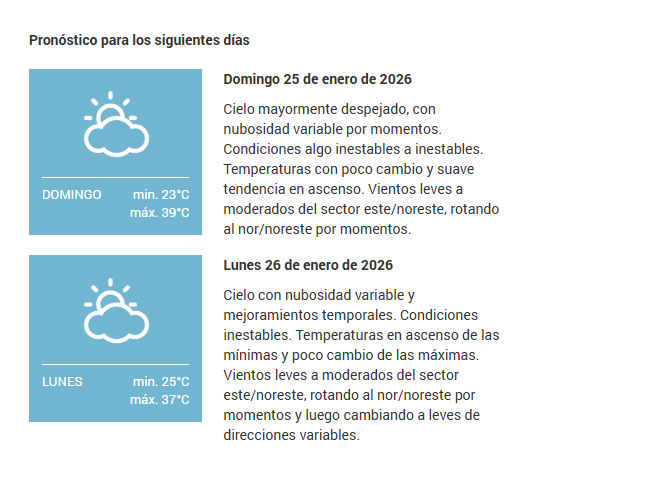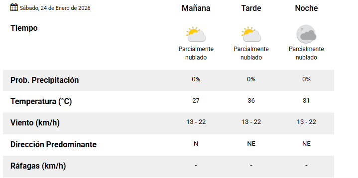 El SMN pronostica para hoy sábado 24 de enero 2026 en la ciudad de Santa Fe de la Vera Cruz capital de la provincia de Santa Fe República Argentina.