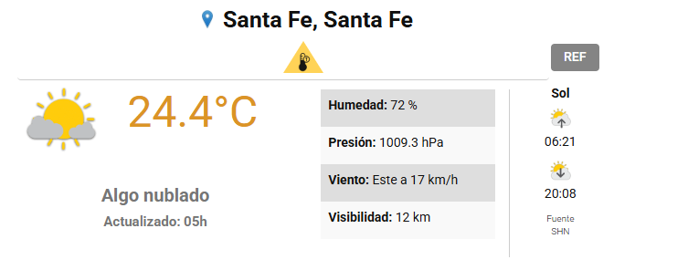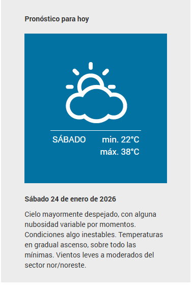 El SMN pronostica para hoy sábado 24 de enero 2026 en la ciudad de Santa Fe de la Vera Cruz capital de la provincia de Santa Fe República Argentina.