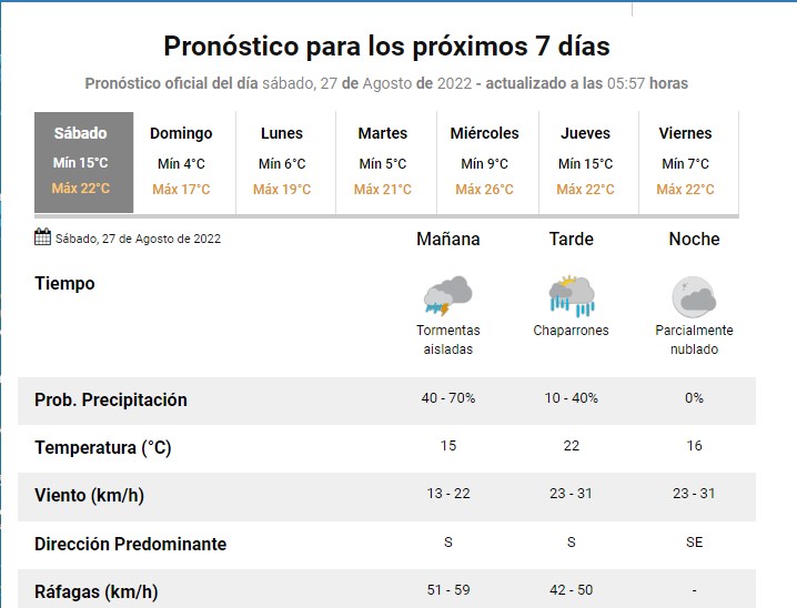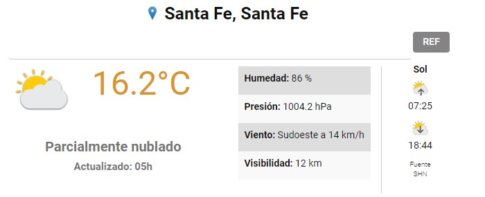 El SMN pronostica para hoy sábado 27 de agosto 2022 para la ciudad de Santa Fe: