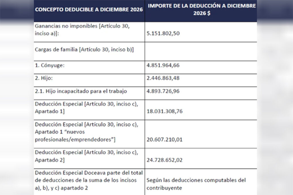 La Agencia de Recaudación y Control Aduanero (ARCA) publicó en su sitio web las deducciones personales y escala del impuesto aplicable a los empleados en relación de dependencia durante cada mes del primer semestre de 2026.