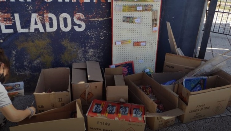 En ese marco se llevó a cabo un procedimiento en calle Roque Saenz Peña al 2700, donde los efectivos constataron pirotecnia no autorizada en un local comercial particular.