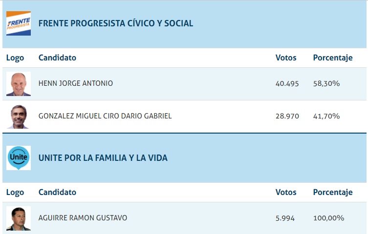 Escrutados el 97,32% de los votos, los candidatos a las generales de junio y que más votos han sacado fueron Marcos Kaniche Castelló, Adriana Chuchi Molina y Jorge Henn.