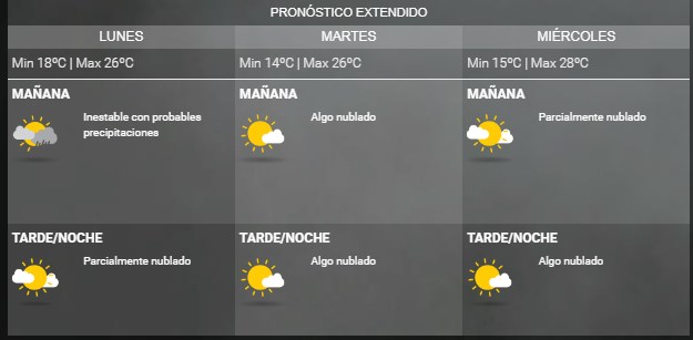Pronstico extendido: Lunes 25 , Martes 26 y Miércoles 27