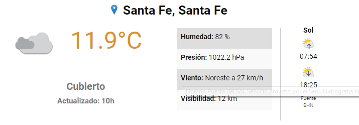 El Servicio Meteorológico Nacional pronostica para hoy domingo 28 de julio para la ciudad de Santa Fe: