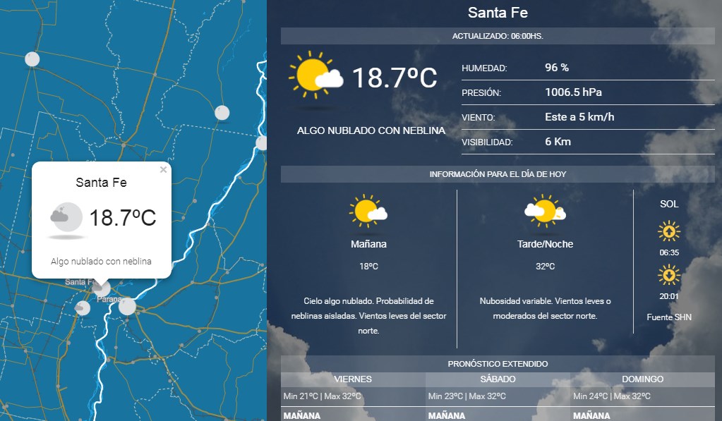 Cielo algo nublado. Probabilidad de neblinas aisladas. Vientos leves del sector norte.Temperatura mínima de 18ºC