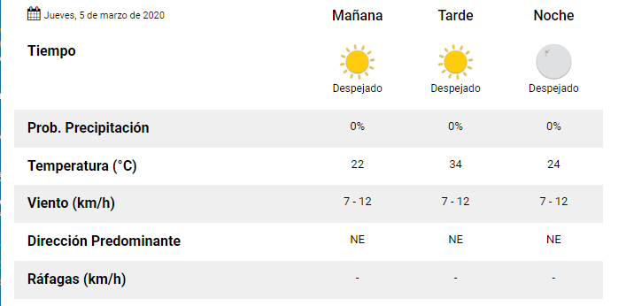 Cielo despejado o con leve nubosidad. Condiciones estables. Temperaturas con poco cambio. Vientos leves a moderados predominando del sector este/noreste.