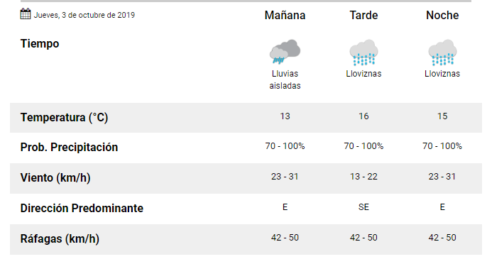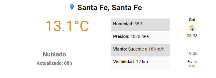El SMN pronostica para este jueves 3 de octubre para la ciudad de Santa Fe: