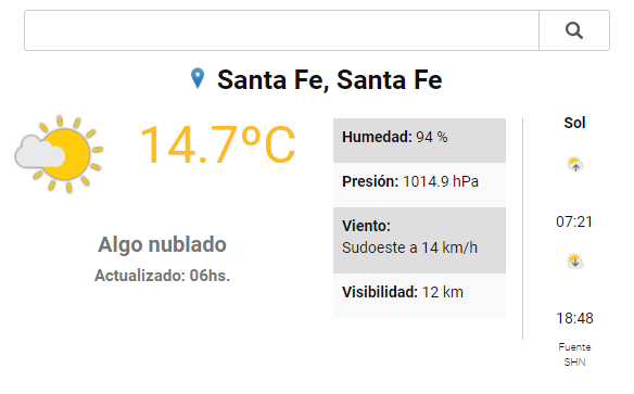 El SMN pronostica para este jueves 11 de abril para la ciudad de Santa Fe :
