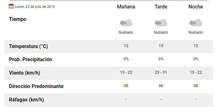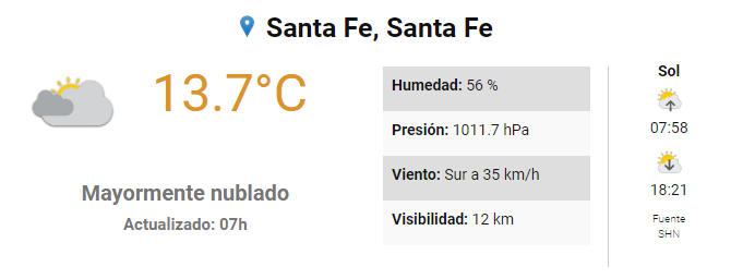 El Servicio Meteorológico Nacional pronostica para hoy lunes 22 de julio para la ciudad de Santa Fe: Comenta sobre esta publicación Navegación de entradas Transfemicidio en la ciudad de Paraná Quini 6 sorteo nº 2690 domingo 21 de julio