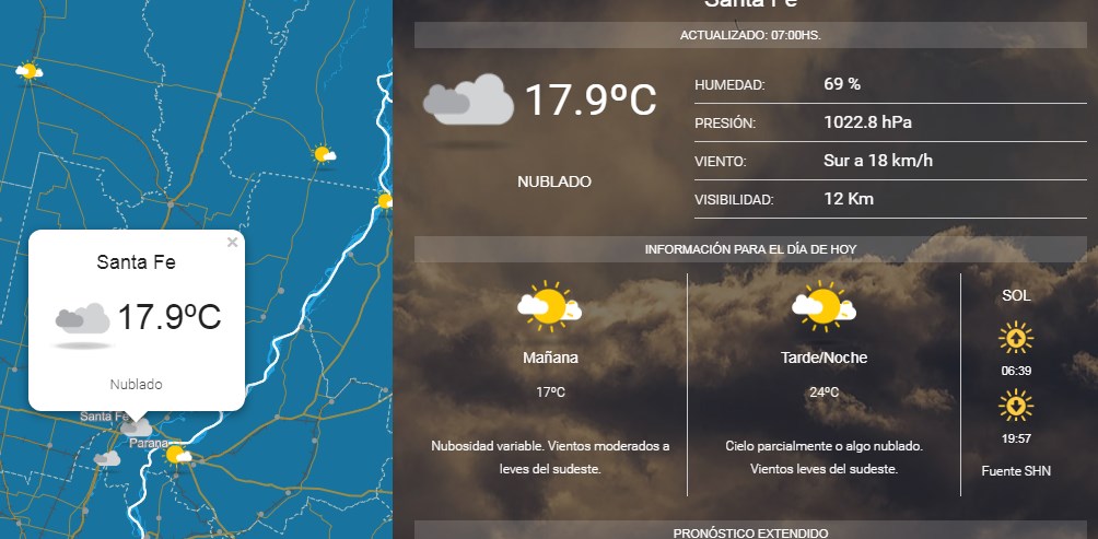 Nubosidad variable. Vientos moderados a leves del sudeste. Temperatura mínima de 17ºC