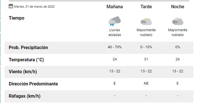 El SMN pronostica para hoy martes 31 de marzo para la ciudad de Santa Fe