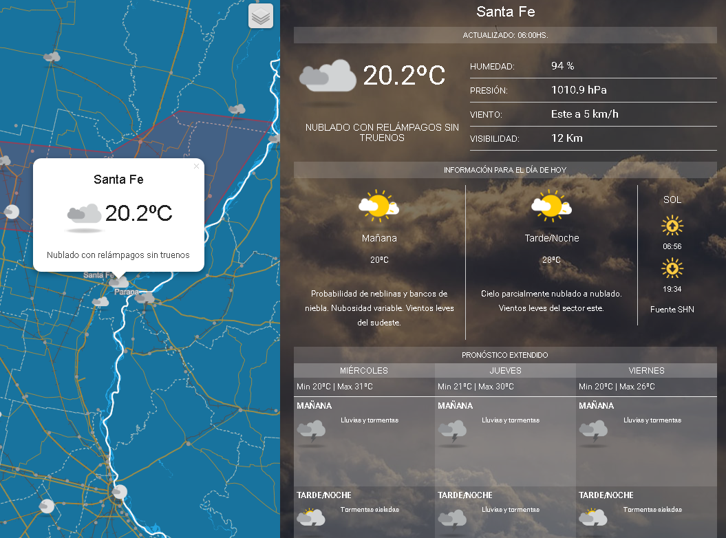 Probabilidad de neblinas y bancos de niebla. Nubosidad variable. Vientos leves del sudeste. Temperatura mínima: 20°C